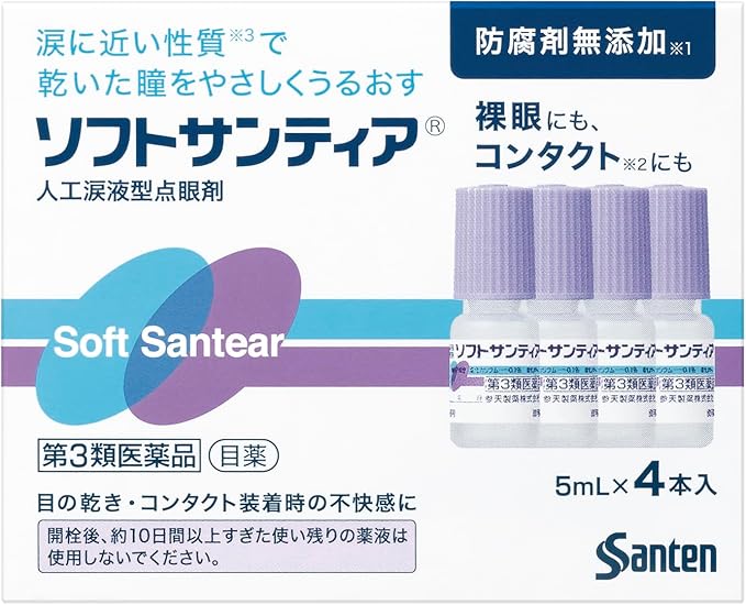 - ドライアイ対策も兼ねるなら → ソフトサンティア(人口涙液:涙で花粉を流す、防腐剤無添加)